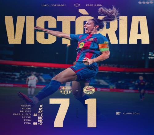 男足喝拉菲,女足送七喜,巴萨女足欧冠首轮71狂胜拜仁